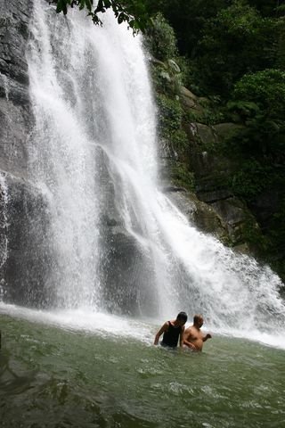 那裡的瀑布可以近距離靠近,但太靠近瀑布的地方水位滿深的.....左半部可以到我的肩,