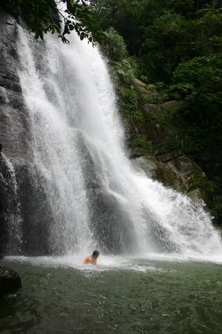 ↓ (下面),有一個超級強的女生,在瀑布下站了超過五分鐘,整個背都紅了!